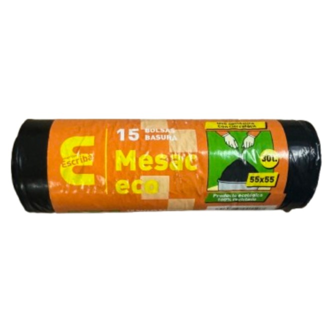 Bolsa basura mesac eco 55x55 cm. negre (cj. 70 r. 25 bl.)