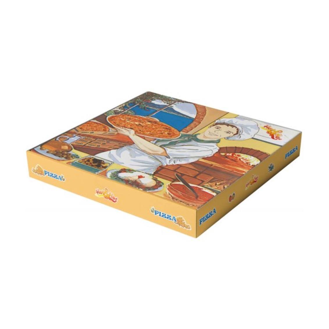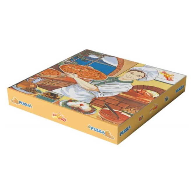 Caja Pizza dibujo pizzero 30x30x3,5 cm. (pq. 100 un.)