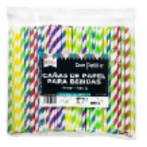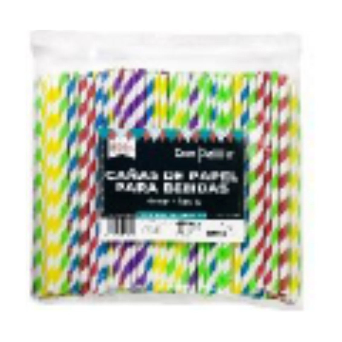 Caña recta espiral papel biodegradable 200x6 mm. colores (pq. 4 pq. 250 un.)